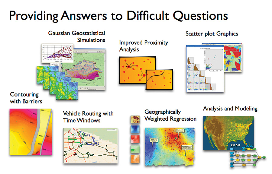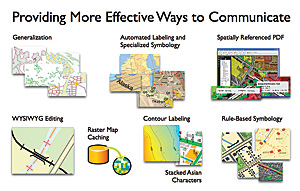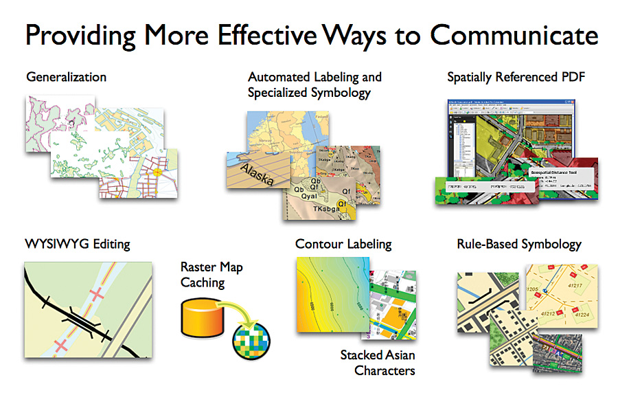 - Improving Geographic Science and CartographyWith each release, Esri focuses on advancing our technology as well as underlying geographic science. Dozens of new capabilities were introduced at 9.3 that improve the spatial analysis and modeling capabilities of ArcGIS. Likewise, specialized capabilities were introduced that allow users to make better maps. They include improvements to labeling, symbology, and automation to create high-quality displays.