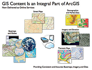 Esri is investing heavily in a new program of online geoservices. While content has always been part of ArcGIS, ArcGIS Online provides much of this content in the form of services that are free to desktop and server users. There is also a growing library of commercial content services that users can subscribe to. This spring, Esri will release a new and powerful extension to ArcGIS Online that will allow users to share their data and maps through the rapidly growing computing environment.