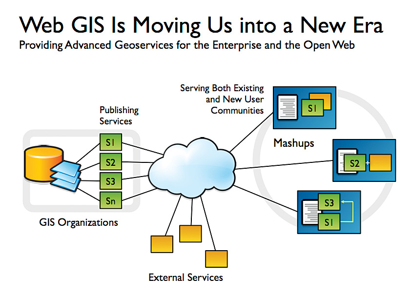Web GIS involves authoring geographic knowledge, including data, models, workflows, and maps, then serving those resources to other users. Web GIS harnesses the power and reach of the Web and integrates the rich knowledge resources of GISauthoritative databases, models, and spatial analysis. Web GIS goes far beyond simple visualization and mapping and provides access to full geographic knowledge to everyone. Over time, Web GIS will become an essential part of the infrastructure of society.