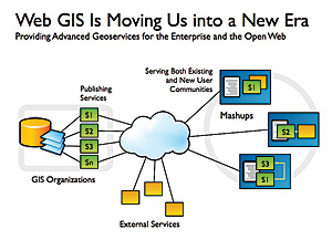 GIS professionals are increasingly providing access to their content as geoservices that can be shared with other users via the Web. These services, combined with the capability to easily create JavaScript applications that link multiple services dynamically, will create a whole new community of less technical users that will benefit enormously. Harnessing the power of the Web in this way will put the vast knowledge of GIS into the hands of everyone, and the result will be dramatic leveraging of the investments that have been made in geospatial databases.