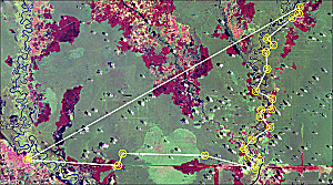 Smits identifies the harvest of palm oil as the main cause of the destruction of Indonesia's ecosystems. Palm oil, easily grown in these areas, is used in a wide range of products from cookies to cosmetics. Demand is high, making the oil palms a major cash crop for Indonesia, but it is not a sustainable product to harvest. Illegal logging, clear-cutting, and uncontrolled burning associated with oil palm operations destroy the tropical rain forests and severely threaten the orangutan population with extinction. "Destroying forests leaves orangutans with no food and no place to run," says Smits. Furthermore, oil palm tree cultivation provides an easy inroad for illegal logging of other valuable rain forest timber and opens access for the atrocities of animal trade. Smits combines satellite imagery and GIS to show changes both on forests and on humans. It is used to challenge the hypothesis that Borneo can indefinitely continue to support oil palm plantations; show the profit and cost factors of these sites and their proximity to transportation and shipping; assess the precision farming factors of soil, elevation, and climate and their relationship to and infringements on local communities; and disclose property ownership disparities. In Sumatra, he deployed SPOT imagery at one- by one-kilometer resolution to show how forests are receding and ground cover is changing from trees to shrubs and weeds. It is also used to reveal corruption by showing where companies say they are cultivating palm oil but are, in fact, clear-cutting high-quality rain forest. Some images reveal conspiracy between timber and oil palm businesses running covert timber operations. Flyovers above suspect areas provide aerial images that pinpoint logging equipment in areas where it should not be. The eye-of-satellite imagery and the analytic ability of GIS reveal these schemes and force the hand of law enforcers to take action. Moreover, imagery and GIS are proven tools for convincing various governments of the world that palm oil consumption is indeed destroying these precious forests. "By using GIS, I was able to demonstrate in a very convincing way that people were misusing oil palms to get their hands on timber," says Smits. "More than half of permitted oil palm plantations are located on unsuitable land for oil palms. They are located in areas where other highly profitable timber grows. GIS is extremely important for visually relaying this information. I don't need to give complicated explanations of the problem because people can easily understand what is happening from our maps. They see how fast the forest has shrunk in just 3 years. This leads them to wonder what the rest of the world will look like in 10 years." The Advantages of Sugar Palm TreesBecause the Indonesian economy is so tied to the cultivation of palm oil, Smits must do more than preach conservation—he has to promote an economically feasible alternative. Smits studied sustainable options and cited the sugar palm tree, which is a multipurpose plant that is edible and can be used for creating ethanol. "It uses little water, needs no artificial fertilizer, and is six times as productive as sugar cane," claims Smits. Since harvesting processes tap the juices of the sugar palm's flowering branches rather than destroying the entire tree as does palm oil harvest, the process retains the forest's integrity.