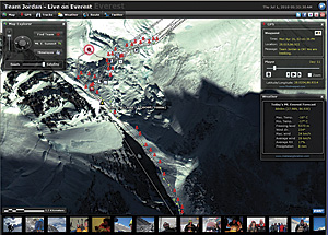 For Live on Everest, the ArcGIS API for Microsoft Silverlight/WPF helped viewers automatically navigate to the team's last reported GPS position and simultaneously see what Team Jordan and others were saying on social networks. It also added the educational components, such as weather forecasts and a terrain model.