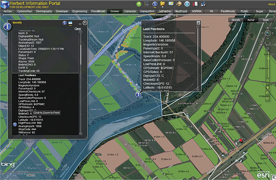 Today, HIP has evolved into an enterprise system built on ArcGIS for Server and ArcGIS for Desktop and extensions. The GIS is web based so that HRIC partners and local farmers have easy access to information. HIP supports most of the critical business processes in the region's sugar industry supply chain by acting as the catalyst for implementing precision farming technology, from improved harvesting and transport management to more efficient milling operations. Applications include Cane Mapping and Management, Real-Time Cane Harvester Monitoring, Sucrogen Rail Safe Integration, and Cane Yield Monitoring systems. These applications use GIS to promote efficiency, productivity, and improved environmental outcomes for HRIC partners and sugarcane growers.