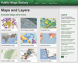 A new way to access ArcGIS Online web maps is to use the Public Maps Gallery template. The template allows users to quickly set up a map gallery web page on their own site while managing the content for it through ArcGIS Online services. The system is lightweight, easy to use, and free.