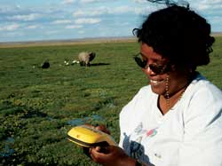 In the 1970s and 1980s, Kenya, overall, lost nearly 85 percent of its elephants to ivory hunters. This disturbing trend was repeated to varying degrees across Africa with one notable exceptionAmboseli National Park in southern Kenya near Tanzania's Mount Kilimanjaro. Here pachyderm herds have grown while others have dwindled. Much of the credit for this counter-trend must go to the Amboseli Elephant Research Project (AERP), which began watching over the park's elephants in 1972. For the past 30 years, AERP researchers have observed the animals on a daily basiscounting bulls and cows, recording deaths and births, identifying families and individuals, and tracking elephant movements and activities in the 150-square-mile park. The AERP database now holds more than 30,000 observations. It is the key to understanding elephant family dynamics and determining which management practices help the animals to survive and thrive in their native environment. Although location is a primary input to every observation sighting, AERP had no means of analyzing the data spatially until 2001. AERP was introduced to the spatial age with the donation of the ArcGIS 8.2 suite from Esri. For the first time AERP researchers could visualize elephant migration through the park and relate their movements to seasonal, vegetative, or climatic changes. Mapping 30 years of observations offered a geographic overview of the different ways in which individual elephants and families responded to changes in their environment. Gaining access to the legacy AERP files for spatial analysis was easy. Since the early 1990s, AERP had been storing its field observation data in a Microsoft Access database. It was a very simple process to convert it to a personal geodatabase in ArcGIS 8.2. However, like many other GIS users, AERP researchers were eager to leverage the power of mobile GIS to improve the accuracy and speed of fieldwork. Trimble donated five GeoXT units, rugged integrated GPS handheld devices with Windows CE software. The first of these units arrived in Kenya equipped with ArcPad. AERP faced a challenge that many mobile GIS users are dealing with todayintegrating data from ArcPad with legacy data. With assistance from Elizabeth Sarow, an Esri technical marketing specialist based in Denver, the Amboseli program developed a solution. Customizing ArcPadSarow traveled to Kenya in fall 2002 to customize the units for AERP's use and train the research staff. Loading ArcPad onto the GeoXT was a simple task. The device is designed to run this popular mobile GIS software. The Trimble GeoXT Getting Started Guide contains step-by-step directions for loading and setting specifications to run ArcPad. "It took only 15 minutes to have the units running ArcPad," said Sarow. The next step was to create a customized user interface for data entry. The researchers collected the field data on paper data entry sheets and later keyed it into the Access database at the field station. Sarow based the ArcPad edit forms on the Access data entry form in use. Using a drag-and-drop process, she built a series of six edit screens that walk the user through a typical observation session. Field data is inputted by using a stylus to pick choices from a drop-down menu or by using the Windows CE keyboard for text fields.