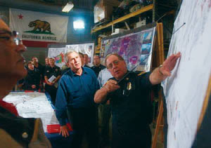 | A fire briefing was held for President George W. Bush at the Cedar Incident Base at Gillespie Airfield in El Cajon, California. |