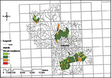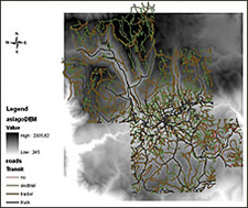 Through the model dialog box, the user can set average costs and the efficiency of the selected skidding systems. The model uses this information to make a simple cost evaluation. The technical map is reclassified, and costs are calculated on a cell-by-cell basis to provide both per cell and per cubic meter values. Outputs are grid maps and database tables containing statistics for the forest stand. Minimum, maximum, average, and total costs are calculated and are strictly dependent on the yield distribution and the choice of systems. Because each skidding system has a different level of productivity and cost, the associated values for each cell are unique. The optimization algorithm starts from this assumption and selects the cheapest system using the Spatial Analyst Cell Statistic tool, which chooses the minimum value between different overlaying grid files. This produces a cost_select map that is compared with systems cost maps to assign to each cell the corresponding system. Each of the maps (one for each skidding system) is summed and reclassified to produce an optimal systems map. This map is similar to the technical systems map but may eliminate less efficient systems. For example, a tractor system might not be included because its low productivity makes it one of the most expensive systems. Inside the optimization method, the cost calculation uses specific systems functions, which are estimated from references and field surveys and correlate productivities with skidding distance from forest roads. Values decrease exponentially with increased skidding distance. After this calculation, the duration and cost of skidding operations are known. These values are transformed in cost in euros per cubic meter, and optimized output cost maps are created. An interesting model process estimates how much wood will be skidded to each forest road section and calculates the average cost of this process. The results of this analysis may be interpreted to determine the effect of building a new road or estimate the cost of transporting wood (primarily using trucks) in terms of the road maintenance that will be required. Implications for Forestry-Wood Chain AnalysisThe results of this model are a good starting point for the analysis of the forestry-wood chain. By adding felling and other administrative costs, it is possible to estimate total operational costs and compare them with wood market prices. A forest manager can determine if operations will be profitable or evaluate the effect of sylvicultural management, as related to yield, on total costs. Through a network analysis, transportation costs can be estimated providing good logistic information about the catchment area related to the location of terminals or industrial areas. For more information, contact Daniele Lubello at daniele.lubello@unipd.it.