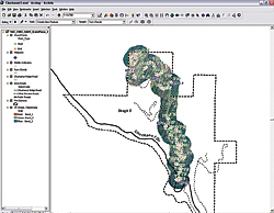 \Chuckanut\JPGFiles\WASP83NFH and inspect the background image. This graphic was registered, resampled, and clipped from a high-resolution image provided by Skagit County GIS. Although it is pixilated, this image can make the relationships between residents, vegetation, and the access road more apparent.