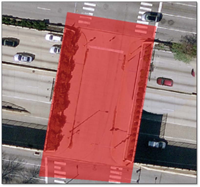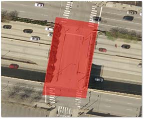 Figure 7: Use the Extract By Mask tool in the Spatial Analyst toolbox to extract imagery for the top of the overpass.