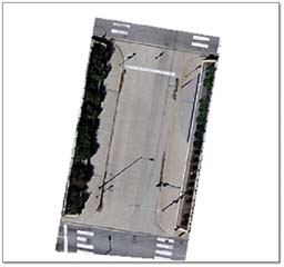 - Use the Extract By Mask tool in the Spatial Analyst toolbox to extract imagery for the top of the overpass. The parameters for this tool include the imagery swatch as the input raster and the overpass polygon as the feature mask. (The imagery_extract file can be used to skip this step.)