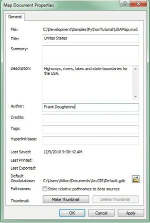 To help you get started with Python, this tutorial will describe how to create a script that produces a simple report for the current map document. The generated report will contain information about all data frames and layers in the map. Optionally, it can list any layers that have broken data links and create a map package (*.mpk) for the document.