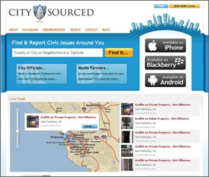 An application developed for all major smartphone operating systems enables citizens to more effectively and directly participate in local government by registering their concerns and forwarding those concerns to government work order management systems. Called CitySourced, the application was developed in summer 2009 by the company of the same name.