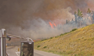 On July 18, 2009, a small wildfire in the hills west of Glenrosa, in southeastern British Columbia, quickly spread and necessitated the evacuation of approximately 3,000 homes.