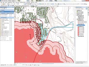 ArcGIS Network Analyst is an excellent tool for mapping and modeling time- and distance-based travel. Network Analyst's Closest Facility (CF) solver connects evacuee points with identified shelters or egress points and calculates the optimal time and distance for travel by many evacuees to one or more safety points. Roads blocked by fire, flooding, wind damage, and other obstructions may be modeled. Multilane routes can be modeled to include both responding and evacuating traffic. Analysis identifies high-volume and restricted intersections and where traffic may be managed by traffic control or by diverting certain evacuees to an available secondary route.