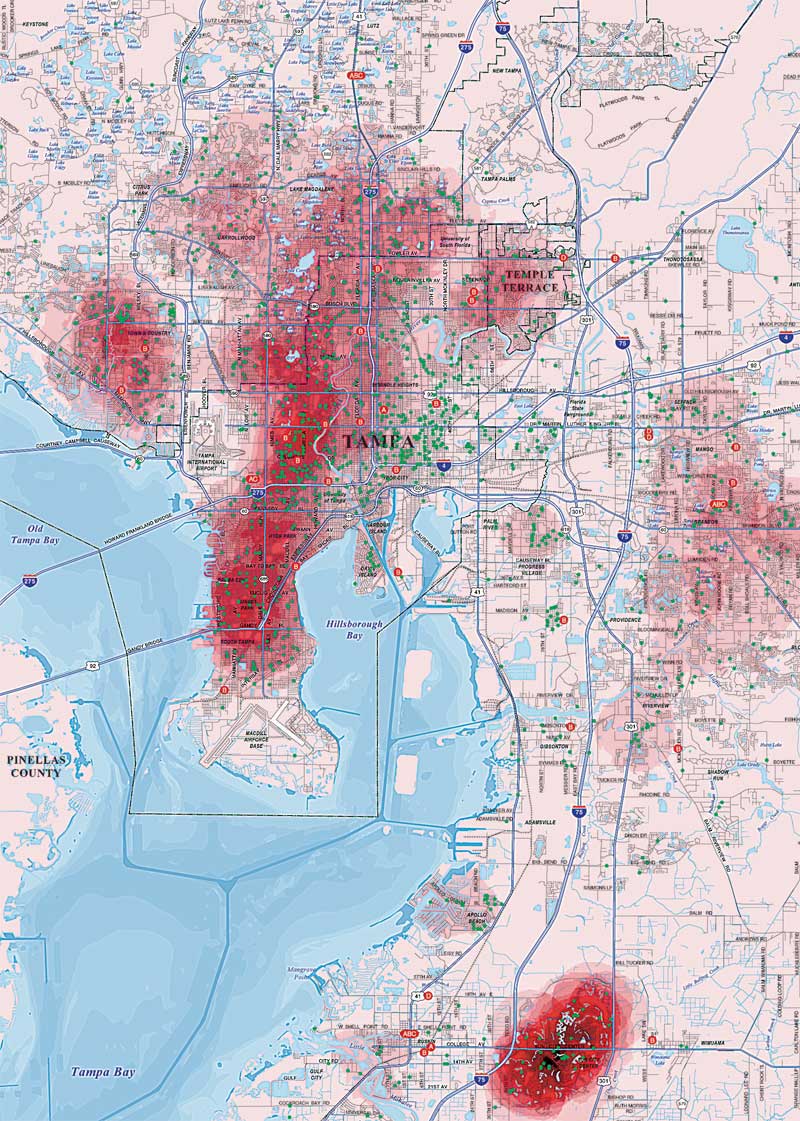 Various local data sources, ArcView 3.2, Adobe Illustrator, and MAPublisher, were also used in the creation of these maps. For more information on these maps, contact Dan Hardy, GIS analyst, at hardyd@hillsboroughcounty.org.