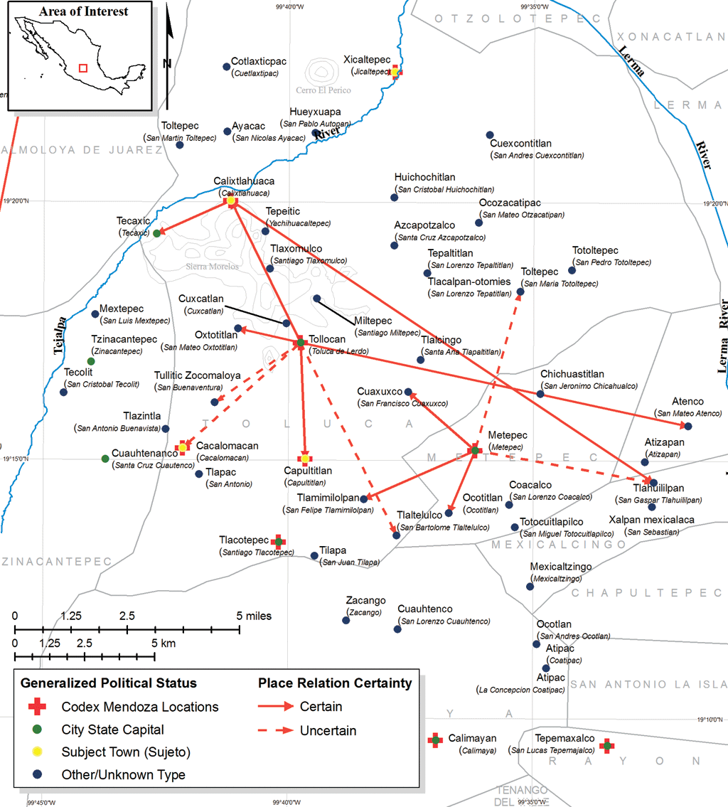 Previous research on reconstructing Aztec political geographies typically involved identifying modern place-names that have indigenous origins, matching these names to historically referenced locations, and representing these locations with generalized cartographic displays.