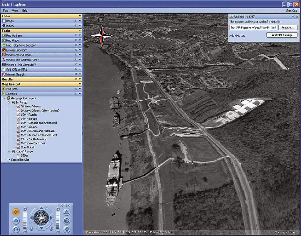 | ArcGIS Explorer can use both KML, the format used by Google Earth, and KMZ, a zipped KML format, files. |