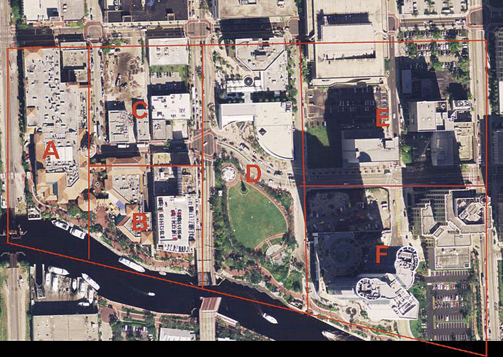 The Fort Lauderdale Historical Society supplied maps, photographs, and images as well as comprehensive plans from the 1920s. A local surveying company, McLaughlin Engineering, provided early archival survey records of properties within the study area. Phone books and other historical documents were used to populate attribute tables with ownership, building use, and other information. Digital orthophotos from the Broward County Property Appraiser's Office were used for assessing existing conditions, and plans and visuals from developers were used for modeling future conditions. Measurements were taken using survey equipment, and buildings were scaled appropriately from digital pictures and architectural plans. In addition, two local developers, Stiles Corporation and Madfis Group, provided site plans and building data in AutoCAD (.dwg) format that was easily imported into SketchUp.