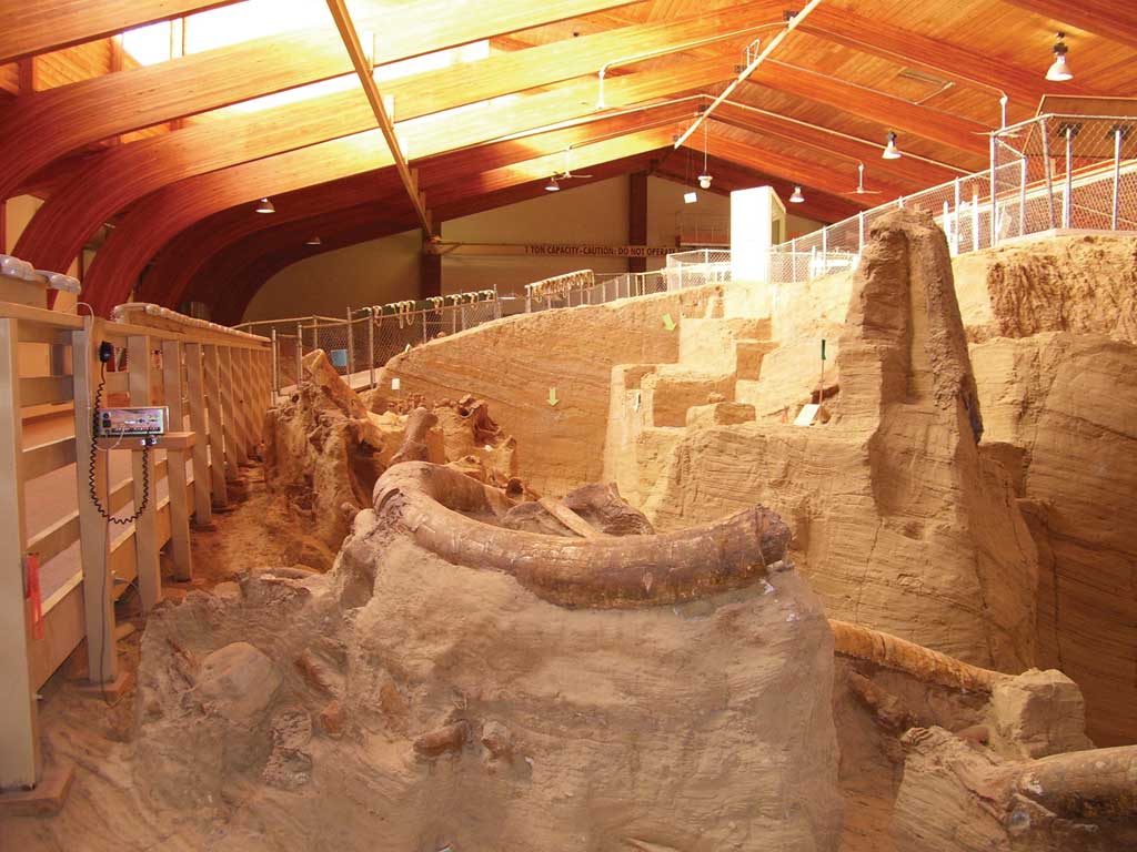 Scientists at a South Dakota research center are remapping the location of bones of Ice Age mammoths with GIS to preserve the context of the find and allow for the automation of quantitative analyses. The Mammoth Site of Hot Springs, South Dakota, is an indoor, in situ Pleistocene bone bed that contains the remains of at least 56 mammoths and numerous other Ice Age animals. Approximately 26,000 years ago, the bone bed was the site of a steep-sided warm-water sinkhole pond. The warm water and year-round vegetation along the edges attracted mammoths, but once in the pond, the steep sides prevented their escape. Although entrapment was probably a rare event, the sinkhole was active as a trap for 300 to 700 years, which accounts for the large number of remains. The site was discovered in 1974 during excavation for a housing development. Three mammoths were found during the first season. From the beginning, site mapping was a high priority. Mapping shows the location of each bone and records information about where it was found. By studying the bone bed's taphonomy [i.e., studying what happened to an organism between the time of its death and the time it was excavated], researchers can determine the environment of deposition and gain a clearer insight into the world of the mammoths. Early Mapping Methods