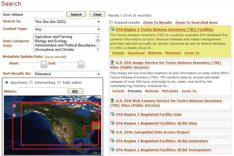 The GDG is the central gateway to EPA's geospatial resources. It enables data consumers to discover, view, and access geospatial resources (e.g., data, services, or applications). Likewise, it enables EPA data contributors to publish and manage their geospatial information for others to use.