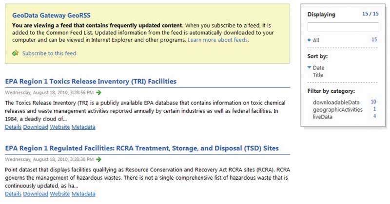 It also has allowed contributors to reuse information to support their mission goals by embedding content directly into their applications. This not only saves time and money but also provides better consistency across the agency. This catalog also streamlines EPA's contributions to external metadata sharing portals by being the single source for contributions to Geospatial One-Stop (GOS) and Data.gov.