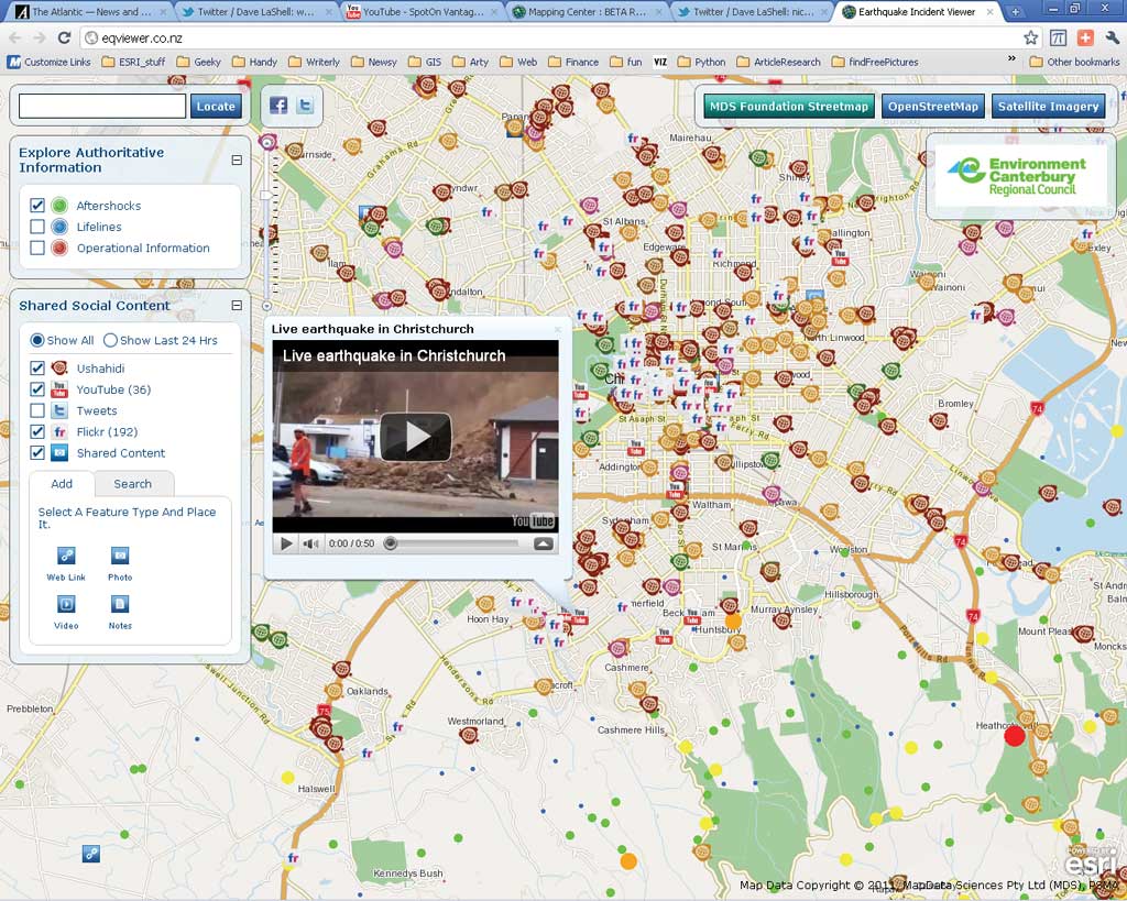 Volunteered geographic information (VGI) applications have harnessed social media feeds to aid response to events such as the earthquake in Christchurch, New Zealand.