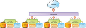 In this scenario, you use the custom AMI created from the staging setup to generate two identical production instances. Next, you employ a load balancing service (called Elastic Load Balancing on Amazon EC2) that will distribute demand across the production instances.