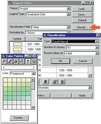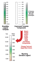 Customizing the Legend in a Layout The DDV ShadeMax Color Palettes download contains an ArcView GIS project called Legend_Graphic.apr. This project contains a single layout document with text and graphics depicting several legends for use with ArcView Spatial Analyst. Creating a template that incorporates one of these legends can save time in making an attractive legend.