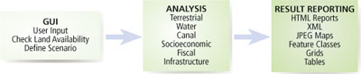 - Results are reported in maps, feature classes, tables, grids, Excel spreadsheets, ArcMap layer files, and HTML files.