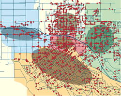When crime distributions are compared to other features in the landscape, similarities or relationships often become apparent. The most common way for measuring the trend for points or areas is to calculate the standard distance separately in the x and y directions. These two measures define the axes of an ellipse encompassing the distribution of features. The ellipse is referred to as the standard deviational ellipse since the method calculates the standard deviation of the x-coordinates and y-coordinates from the mean center to define the axes of the ellipse. This ellipse shows if the distribution of features is elongated, which indicates it has a particular orientation. For example, crime events grouped by police beat and evaluated using the Standard Deviational Ellipse tool may show that, for some police beats, crime activities are evenly distributed throughout the beat so the ellipse resembles a circle. In other cases, crime activities tend to follow road networks, and crime incidents in these police beats show that orientation. ConclusionBy placing crime incidents in a geographic context and applying the spatial statistical analysis tools now available in ArcGIS 9, crime analysts can better understand where and why crime activity is occurring and law enforcement agencies can respond in the most efficient and effective manner. Additional ResourcesNot only crime analysts but also GIS practitioners in many research areas, such as epidemiology, archaeology, wildlife biology, and retail analysis, will benefit from the spatial statistics tools in ArcGIS 9. These tools can be easily modified or extended because most were written using the Python scripting language. The source code for the statistical tools can be accessed from ArcToolbox and serve as samples and templates for further customization. For more information about scripting in the ArcGIS geoprocessing environment, select Geoprocessing >Writing Geoprocessing Scripts on the Contents tab of the ArcGIS 9 Online Help. The Esri Guide to GIS Analysis, Volume 2, an Esri Press book scheduled for release in the third quarter of 2005, provides additional specific information on spatial statistics tools and more general information on spatial data analysis using GIS. It is the second in a series by Andy Mitchell. The first book, The Esri Guide to GIS Analysis, Volume 1, focuses on visual and cartographic methods of spatial data analysis. Both books can be purchased online at www.esri.com/shop. Online resources are also available. A five-minute video showing hot spot analysis of emergency 911 call data is available on the Esri Web site. An article describing the tools in the Spatial Statistics toolbox appeared in the OctoberDecember 2004 issue of ArcUser and is available online. For more information on the Python scripting language, visit www.Python.org. About the AuthorsDr. Lauren Scott works on the ArcGIS Geoprocessing Team and developed the tools in the Spatial Statistics toolbox. She holds a Ph.D. in geography from the joint doctoral program at San Diego State University in California and the University of California, Santa Barbara. Nathan Warmerdam works as a product specialist on the Geoprocessing Team. He holds a master's degree in geographic information science from the University of Redlands in California. |