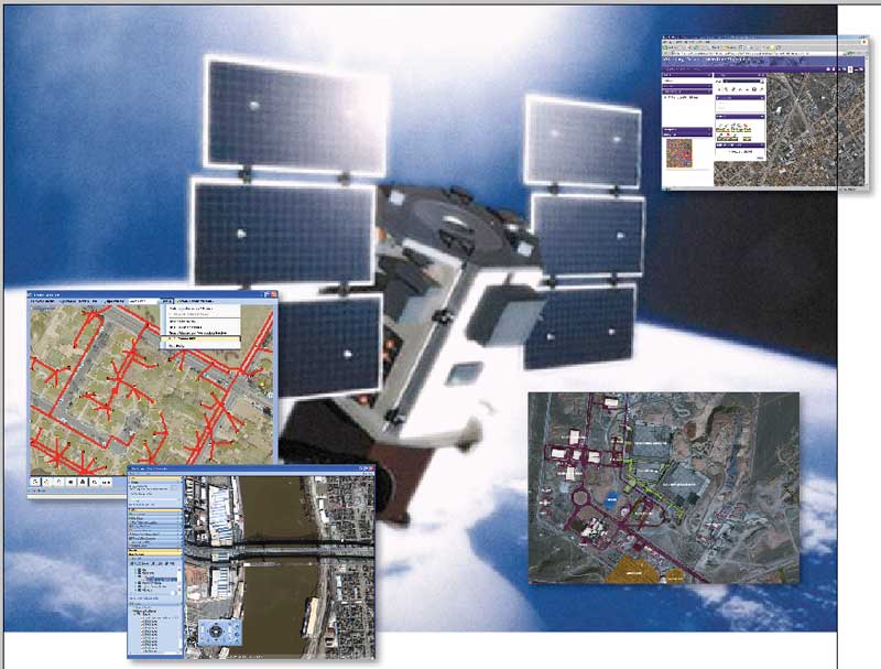| Imagery adds new dimensions to applications such as utilities, public safety, mobile applications, and military intelligence (left to right, top to bottom). DigitalGlobe's QuickBird satellite is one of a new generation of satellites that have made higher resolution imagery commercially available. |