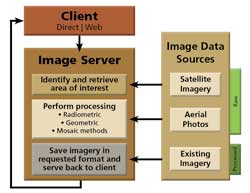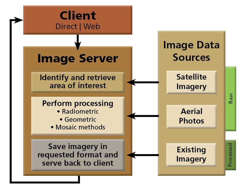 | ArcGIS Image Server revolutionizes the way imagery is used in GIS by making just the imagery needed available very quickly. Raw imagery can be processed on the fly. |