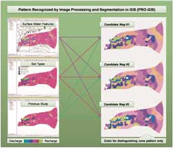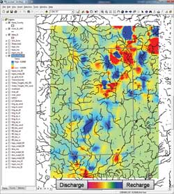 Unfortunately, recharge and discharge rates and patterns are difficult to characterize and cannot be estimated using a single method for all practical applications. This adds uncertainty to the management of water resources. Conventional recharge and discharge studies usually require field characterizations that are labor intensive and require months to complete. A Critical Research PriorityWhen Bertrand Russell (18721936) wrote, "What men want is not knowledge but certainty," he must have been thinking of public water supplies. People expect water to flow when they turn on their taps. Effective management of water resources requires quantifying the interactions among the complex and uncertain processes in the hydrologic cycle. Groundwater recharge and discharge depend on the hydrological relationships among groundwater, climate, and surface water. In general, it is not possible to directly measure fluxes into and out of the groundwater system over large spatial scales. Hence, indirect methods must be used. A practical method capable of identifying recharge and discharge zonations using readily available data in a short working time frame will help water resource managers and investigators plan more efficient strategies for additional modeling and data collection activities required by conventional recharge and discharge estimation methods. The delineation of recharge and discharge zonation in conventional methods is to some degree arbitrary and subjective. Therefore, an approach based on cross analyzing results from various methods and using existing ancillary data should lead to more objective predictions than current approaches based on only a single method. ArcGIS proves an ideal platform for the cross-analyzing approach to estimate initial recharge and discharge maps. Fast initial recharge and discharge estimation and mapping help decision makers and modelers design more accurate and cost-effective models before initiating labor-intensive field measurements. PRO-GRADEA new GIS-based methodology that uses an ArcMap plug-in has been developed that helps hydrogeologists estimate recharge and discharge more efficiently than conventional methods. By leveraging the strengths of ArcGIS for cross analysis, scientists at the University of Illinois have developed a new GIS based methodology along with an ArcMap plug-in package, PRO-GRADE or Pattern Recognition Organizer and Groundwater Recharge and Discharge Estimator, to help hydrogeologists estimate recharge and discharge in a more efficient way than conventional methods. PRO-GRADE uses several image processing algorithms to estimate and visualize shallow recharge and discharge patterns with ArcGIS 9.2. It requires a preparation time measured in hours rather than months and uses readily available data for water table and bedrock elevations and hydraulic conductivities. It can provide a fast initial estimate prior to planning labor-intensive and time-consuming field recharge and discharge measurements. PRO-GRADE is a free software package for research and educational purposes. Its development was sponsored by the U.S. Geological Survey and National Institutes for Water Resources. The plug-in was developed to assist ongoing assessments of the water resources in Illinois and Wisconsin and is also being used to assist several groundwater resource studies in Nevada, California, and New York. The package consists of two separate programsthe Pattern Recognition Organizer for GIS (PRO-GIS) and the Groundwater Recharge and Discharge Estimator for GIS (GRADE-GIS).