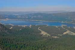 Prior to the treatment, DFG conducted digital aerial photography surveys of the project area at key times to evaluate the water levels and habitat conditions of the reservoir and its tributaries. Rather than using traditional orthorectification procedures, the ArcMap georeferencing toolbar was used to save time by quickly bringing the aerial photographs into register with the rest of the project GIS data. Interactive Map ViewerUsing ArcIMS and DFG's map viewer template, an online interactive Lake Davis map viewer was set up for project staff and the public. [DFG's map viewer template has won awards from the Organization of Fish and Wildlife Information Managers in 2005 and a first place in the Internet Mapping contest at the 2003 Esri International User Conference.] This made it easy to assess the geography of the project area and particular GIS layers of interest using just a Web browser. Map Atlases
