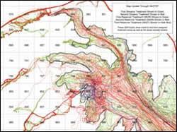 Bathymetric (water depth) contour data for Lake Davis was provided by the California Department of Water Resources (DWR) in CAD format. Using various geoprocessing techniques, DFG GIS staff produced derivative GIS products from the CAD data including bathymetric triangulated irregular networks (TINs), digital elevation models (DEMs), and hillshades. These derivative products were used to help calculate the amount of rotenone needed for the reservoir treatment, including specific amounts to be applied within each quarter-mile grid. Supplemented with daily reservoir-level information provided by DWR's California Data Exchange Center, the bathymetric data was also used to create a GIS layer that estimated the reservoir shoreline location at the time of treatment. While the reservoir has a capacity of about 84,400 acre feet, the storage was around 41,800 acre feet during the treatment. Treatment Status MapsDuring the chemical treatments, stream and reservoir treatment teams carried GPS units that recorded daily travels as track logs. At the end of each day, the teams turned in their GPS units for processing. GIS staff downloaded the track logs from the units and converted them to shapefiles using DNR Garmin software (developed by the Minnesota Department of Natural Resources [DNR]). Using ArcMap and ArcGIS Explorer, status maps were produced using the GPS track log shapefiles to show how the treatment was progressing. Project managers used the maps to determine if all target areas had been visited and to adjust the deployment of treatment crews as necessary. ConclusionGIS and GPS proved to be powerful tools critical to the successful implementation of a project of this scope and complexity. GIS provided the means to create needed map-reference products and facilitate geographic analyses. GPS provided necessary tools for surveys, navigation, and tracking. Both technologies were utilized to produce status maps that were invaluable in conducting the 2007 treatment. For more information, visit the Lake Davis Pike Eradication Project Web site at www.dfg.ca.gov/lakedavis/ or the DFG Web site at www.dfg.ca.gov or contact Will Patterson at wpatters@dfg.ca.gov or geodata@dfg.ca.gov or Ken DeVore at kdevore@dfg.ca.gov. About the AuthorsWill Patterson is a GIS specialist for DFG's Biogeographic Data Branch in Sacramento. He has a bachelor's degree in geography and economics from the University of California, Davis, a certificate of study in GIS and remote sensing from Humboldt State University, and a master's degree in natural resources also from Humboldt State University. He is a former Esri User Conference student assistant. Ken DeVore is a GIS specialist for DFG's South Coast Region in San Diego. He has a bachelor's degree in anthropology from California State University, Stanislaus, and a master's degree in planning from the University of Southern California. DeVore was the GIS team leader for the Lake Davis Pike Eradication Project. AcknowledgmentsThe authors thank Greg Ewing, Lora Konde, and Isaac Oshima for their generous GIS and GPS assistance on this project. Thanks also go to the project management for assistance with this article and the project field teams for incorporating GIS and GPS into their work. |