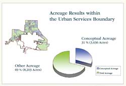 The staff also decided to exclude any parcels within the airport influence area. Building types and heights are limited within the airport influence area. The Erase tool in the Overlay toolset in Analysis Tools in ArcToolbox was used to clip the parcels from the airport influence area. Again, GIS Services used the Clip tool to include potential developable land, even when the parcel's original shape was not retained. Other Areas ExcludedStaff also decided to exclude any parcels less than an acre in size. Additional parcels were eliminated by manually reviewing their attributes. An attribute list containing the parcel data was created, and discrepancies were reviewed and removed by the Community Development director. After confirming that the analysis was complete, the area and acreage fields were recalculated to validate their respective attributes. Some parcels were clipped during the process, so GIS Services needed to recalculate certain fields to represent their updated spatial representation. Results and ConclusionThe total acreage and parcel estimates were created using the Clip tool in the Analysis Tools in the Extract Toolset of the Analysis Tools to clip the parcels from the USB. The Erase tool in the Overlay Toolset in Analysis Tools in ArcToolbox was then used to erase the parcels within Helena's city limits boundary. Because some parcels were clipped during the process, the shape area field was recalculated. This located 11,839 total acres that were within the USB and outside the Helena city limits. These results were graphically presented to planning staff in both map and graph formats. The analysis provided a graphic representation of the potential developable parcels around Helena. The results provided important information for community planners. Acreage was determined by summarizing the Acreage field within the Conceptual Parcels layer. The project detemined that 3,636.6 acres could potentially be developed and approximately four single-family lots could be developed per acre for a total of 14,546 lots. For more information, contact Jason Danielson at jdanielson@co.lewis-clark.mt.us. AcknowledgmentsSpecial thanks to Jerry Grebenc, Frank Rives, Paul Spengler, Sharon Haugen, and Eric Spangenberg for their ideas and comments throughout the project. About the AuthorJason Danielson is the GIS database analyst for the City of Helena/Lewis and Clark County GIS Services Department. He holds a bachelor of science degree in geography from the University of North Dakota. |