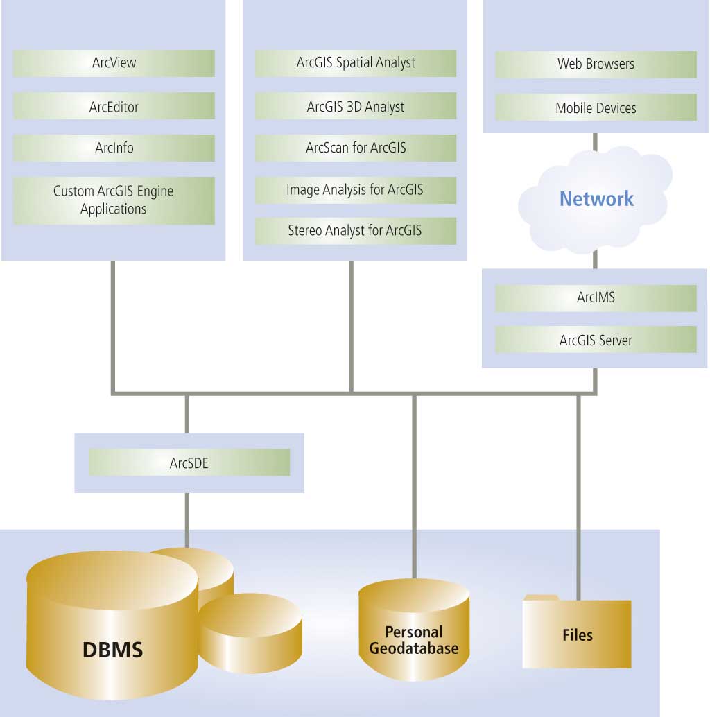 ArcGIS is an integrated collection of software products that delivers a system for storing, managing, analyzing, and serving imagery. These software products include ArcGIS Desktop; ArcSDE; and the ArcGIS extensions designed for visualizing and analyzing image data, ArcIMS and ArcGIS Server. With ArcGIS, users can utilize and manage raster data within a common framework that maximizes performance and streamlines workflows.