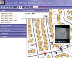Having a spatial layer that locates graffiti gives the Police Department many advantages. Taggers will often provide useful information, such as gang affiliation, within the graffiti lettering. The police can perform GIS analyses to find trends in tagging and identify problem areas. Some graffiti is associated with a street gang or a specific tagging crew. If so, this data is entered into the application so police can determine when and where these crews are active and get a general idea of gang territory. All the graffiti data is available to the Police Department in a user-friendly application. Capturing the Cost of GraffitiGAT allows the total cost—from an individual event to all graffiti caused by a specific tagger—to be easily calculated. When the Public Works abatement crew removes the graffiti, the cleanup method and materials used are entered as well as how much time was required for removal, and GAT calculates the cost of removing the graffiti. The Public Works Department can determine where money is being spent on graffiti removal and the neighborhoods and wards where tagging most often occurs. When investigating graffiti-related crimes, the Police Department also enters the cost of each investigation into the GAT system. The documentation of graffiti investigations becomes criminal evidence. Due to the sensitive nature of this information during a criminal investigation, partitions have been made in the system that separate the data for the Police and Public Works departments. The Public Works segment includes the graffiti images, location, and removal costs, while the Police portion appends information on the tagger, moniker, and the victim. The costs associated with prosecuting and suing a tagger in a civil lawsuit are entered by the city attorney. If the tagger is a minor, the city attorney can sue the parents or legal guardians, giving them a strong incentive to keep their children away from such activities. GAT allows for the construction of a proper chain of evidence for both the prosecution and the civil lawsuit by providing picture evidence with time stamps, costs, digital images, and locations. Integrating Technologies