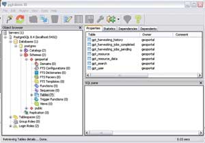 The previous section created the geoportal schema in the PostgreSQL database. This section will populate that schema with the tables the geoportal needs to function.