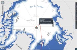 The RGS archives supplied historic maps, charts, stories, and photographs of six explorers, whose attempts to reach the North Pole dated from the early 1800s to the late 1960s. ESRI (UK) worked with maps and charts scanned from the original documents in the RGS archives. "Being mapping enthusiasts, it was quite an honor to be able to work with the original maps and bring them to life with our interactive map," Wilkinson said.