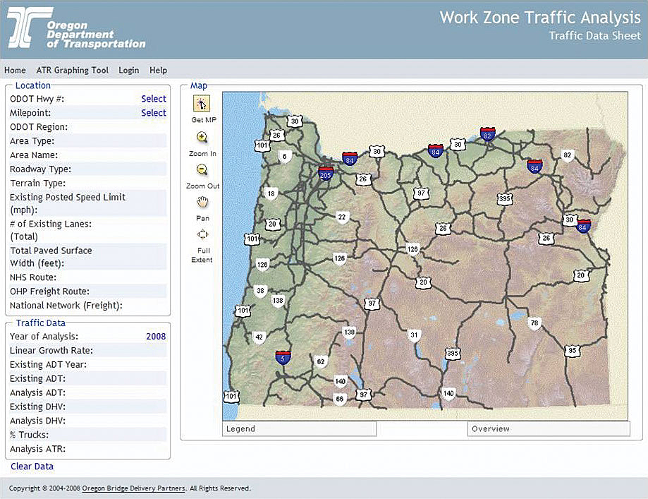 Using a GIS-based interface, ODOT analysts can select the location and other information for a specific project site from the map itself rather than tabular lists. In 2007, WZTA received the Team Excellence Pathfinder Award from the American Association of State Highway and Transportation Officials.