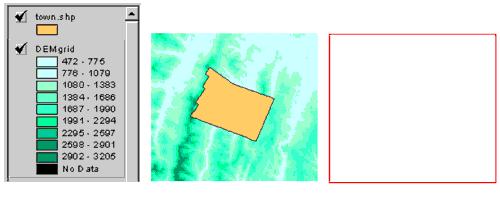 After creating a hillshade for the DEM theme, the Map Calculator in ArcView Spatial Analyst was used to add the DEM grid and grid file generated from the Mapunion shapefile together.