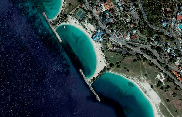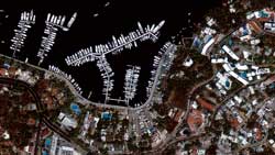 Montego Bay, Jamaica, resort area (bottom photo) and Acapulco Bay, Mexico (top photo) are captured with pan sharpened natural color IKONOS satellite imagery at one meter/pixel.