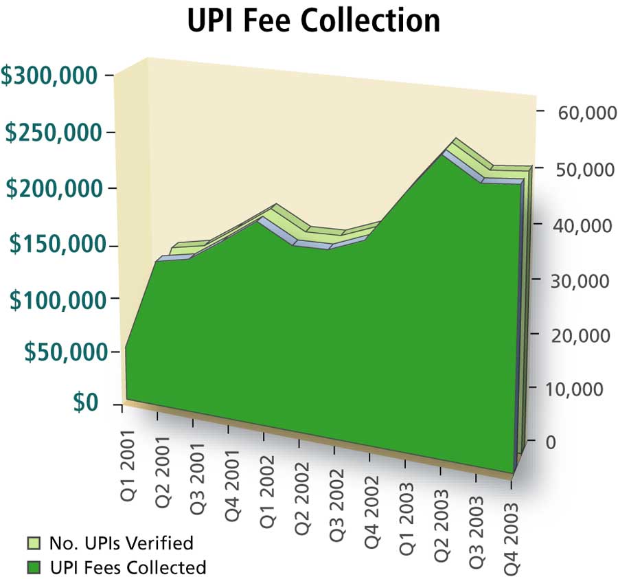 The implementation of the UPI program coupled with record low interest rates on home mortgages has led to significant revenues for the county. Since February 2001, the program has verified more than 400,000 UPI numbers, which resulted in revenues exceeding $2 million. In 2003 alone, $963,000 in UPI fees were collected.