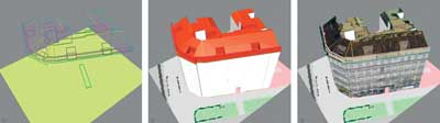The City of Vienna also uses ArcSDE to manage elements of MZK, the digital terrain model, and the supply line cadastre. This 2.5-dimensional geodata is mainly used in ArcGIS. Presently, approximately 100 workstations are equipped with ArcGIS. The city's geoinformation technicians wanted a three-dimensional solution for buildings and subterranean structures that was compatible with the existing system. The CityGRID system (www.citygrid.at) was the solution. This system was implemented in several stages beginning in 2003. Using this system, geodata is topologically processed and the result saved in a three-dimensional database so that modeled objects can be continuously updated. Generating the City ModelIn the first phase, the aboveground roof scenery of the city model was established by completing the existing geodata using photogrammetric aerial restitution. This task required only two employees from the surveying department. In contrast, the tasks associated with MZK