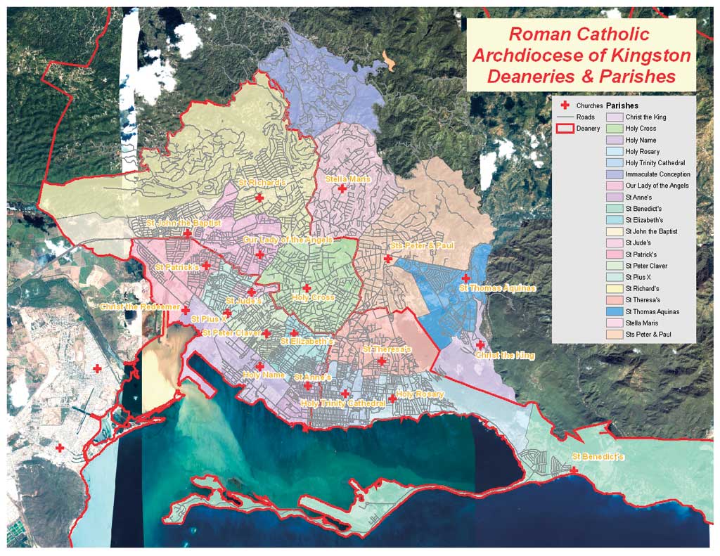 The city of Kingston accounts for four and one-half deaneries, 20 church parishes, and 23 churches. However, while church building locations are generally known, the full extent of many parish boundaries is not. Also, the archdiocese does not know the full geographic range and distribution of these churches. The absence of this information affects the ability of individual churches to plan and coordinate activities, such as feeding the poor and other social programs, as well as the archdiocese's overall planning and management of the region.