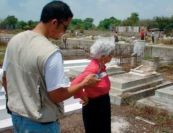 | An ArcPad-equipped PDA was used to find graves in the field at Gah San in 2005. | accompany the financial information that comes into the archdiocese's offices from these churches. The correlation of national GIS data on community populations, socioeconomic data, and roads with church information provides explanations for observed patterns and trends.