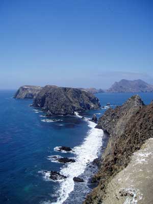 Much of the detailed data in the Ocean Basemap is located along the coastal regions, which are the most surveyed parts of the ocean. Shown here: The shoreline on East Anacapa Island off the California coast. (Photograph courtesy of NOAA/Claire Fackler, CINMS)