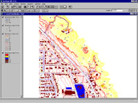 In the Table of Contents for the View, double-click on the legend for each theme to bring up the Legend Editor. Use the drop-down box to change the Value Field from Color to Layer. Select one of the color ramps under Color Scheme for each theme and apply the changes for each theme before closing the Legend Editor. A theme showing just elevation will be created by extracting the contour lines from Moabtopo.dwg Line using the Drawing feature found in the Theme Properties dialog box.