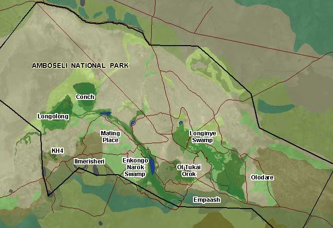 | Amboseli researchers use ArcView to understand elephant behavior. |